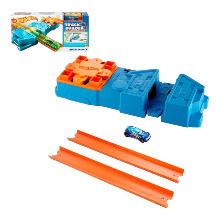 - Incluye: 1 vehículo básico de Hot Wheels, 1 aumentador de potencia y 2 piezas de pista naranja.