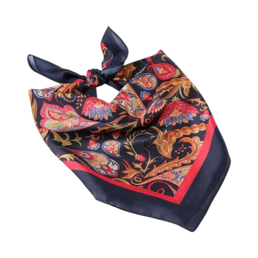 Dale un toque clásico y sofisticado a tu estilo con la bandana Greta de Humana. Su estampado paisley sobre fondo azul marino se complementa con delicados marcos en tonos rosado y azul, creando una pieza elegante y versátil. Las terminaciones de costura lisa aportan un acabado pulido, ideal para lucir en el cuello, en el cabello o como accesorio de bolso.