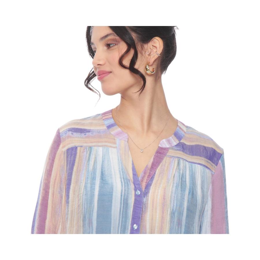 Luce fresca y elegante con esta blusa listada de Wados en tono lila. Su tejido liviano y su diseño abotonado la convierten en una opción ideal para días de oficina o salidas casuales.