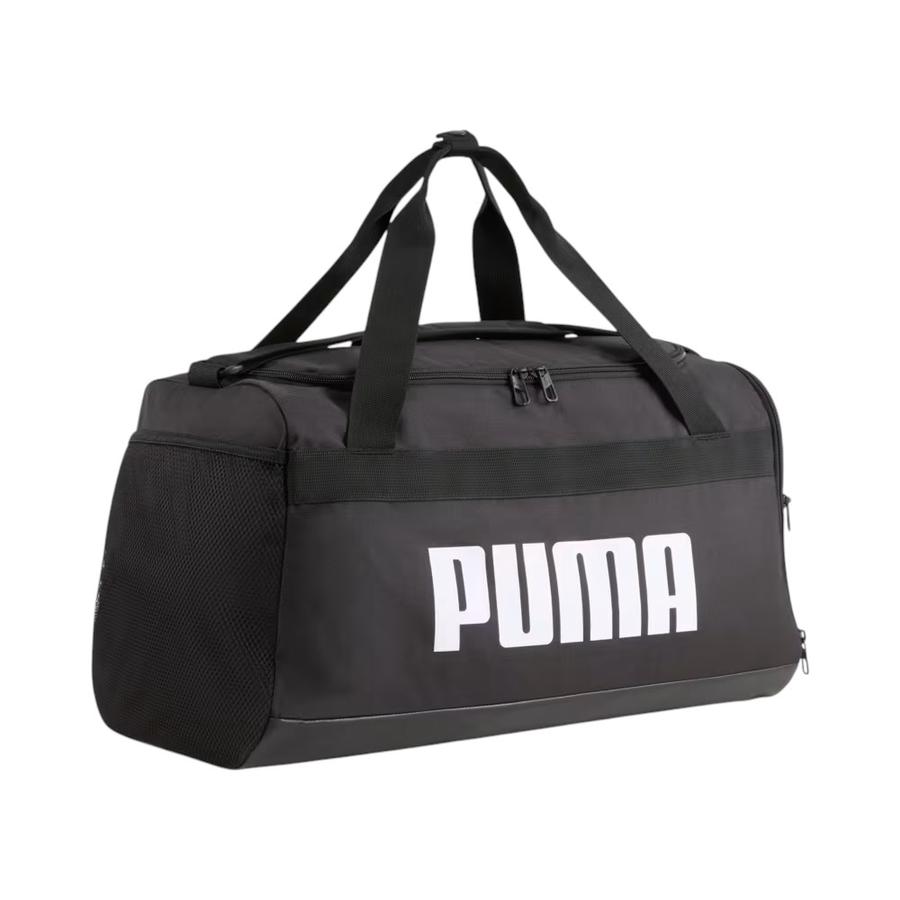 Bolso Deportivo Puma Challenger Negro El bolso deportivo Puma Challenger es ideal para entrenamientos, gimnasio o viajes cortos, ofreciendo amplio espacio y organización en un diseño práctico y resistente. Características: • Marca: Puma • Modelo: Challenger • Color: Negro • Tipo: Bolso deportivo • Capacidad: 35 litros • Dimensiones: 51 × 25 × 28 cm • Compartimento principal: Cierre bidireccional • Compartimento calzado: Lateral con cierre • Bolsillos: Lateral con cierre y lateral de malla • Detalles: Marca PUMA