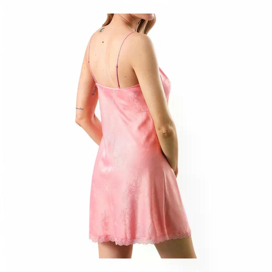 Camisola Satín Flores con Encaje Jacquard Rosa