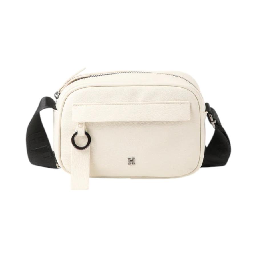 La cartera Humana Brenda en ecocuero Blanco es un accesorio elegante y funcional, ideal para el día a día. Su correa de tela ajustable permite llevarla cómodamente como cartera de hombro o cruzada. Con un diseño práctico, incluye un bolsillo con cierre en el interior y otro en el frente con un tirador de argolla metálica. Los detalles metálicos en color Blanco oscuro, incluyendo los cierres, tiradores y el logo, aportan un toque sofisticado.
