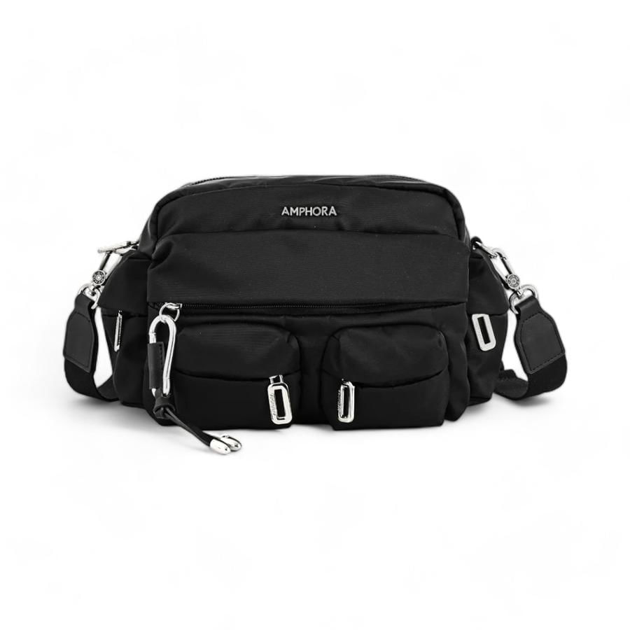La cartera bandolera Berta en color negro es perfecta para llevar tus esenciales diarios con estilo. Este modelo sport chic de Amphora, confeccionado en nylon, es ideal para tus actividades diarias o escapadas de fin de semana, proporcionando comodidad y espacio sin sacrificar el estilo.