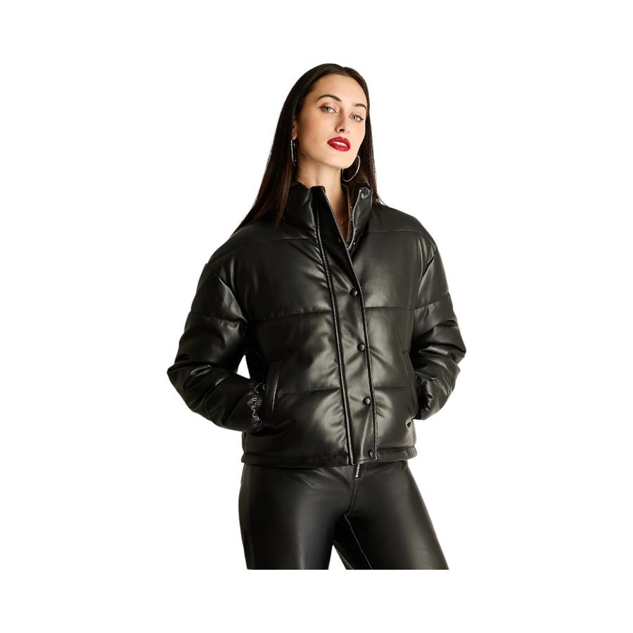 Chaqueta Puffa Mujer Acuarela Ecocuero Negro