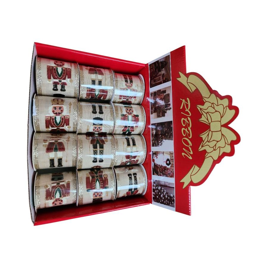 Cinta Navideña Matiz Cascanueces 6.3cmX2.5mt Dorado Dale un toque de magia y tradición a tus paquetes con esta cinta navideña Matiz. Su diseño presenta un encantador estampado de cascanueces de estilo clásico, sobre un fondo color crema con bordes dorados con glitter. Es la cinta perfecta para añadir un acento festivo y sofisticado a tus regalos, coronas o arreglos florales, celebrando la tradición navideña. Características: •Tipo de producto: Cinta navideña decorativa •Diseño: Estampado de figuras de cascanueces con glitter •Color: Dorado y crema •Uso: Envoltura de regalos y decoración •Material: Textil •Dimensiones: Ancho: 6.3 cm; Largo: 2.5 m (el producto viene por unidad)