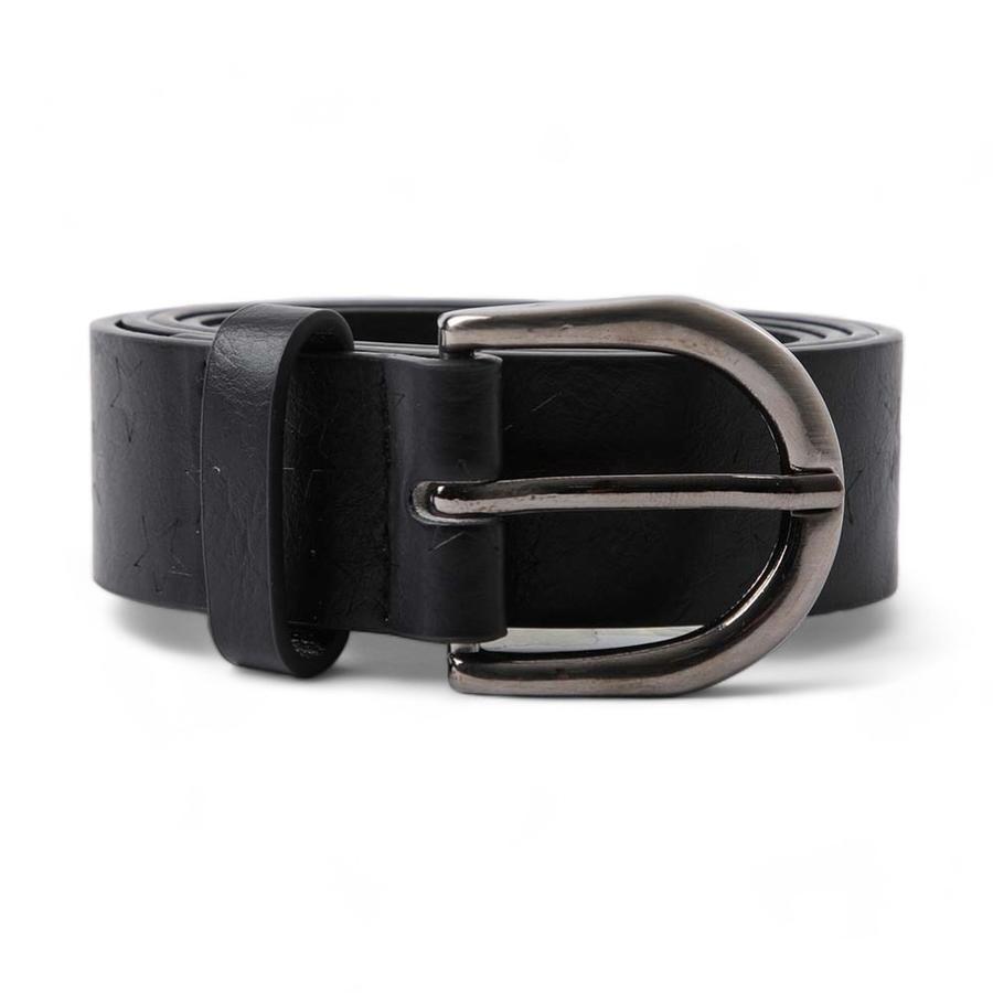 El cinturón Invierno Stars de Humana en color negro es una pieza elegante y moderna para complementar tus looks de invierno. Con un diseño de estrellas en bajo relieve y una hebilla redonda plateada, este cinturón añade un toque de estilo a cualquier conjunto.