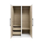 El Closet Carraro de 3 Puertas Blanco es un producto con un diseño moderno, y su versatilidad facilita la combinación al momento de crear un ambiente. El marco exterior y las puertas integradas hacen que este producto sea único, lo que además de ser moderno, es muy limpio. Está fabricado con MDP de 15mm y 12mm con acabado de pintura UV y tiene tres puertas con bisagras de metal. También cuenta con las siguientes