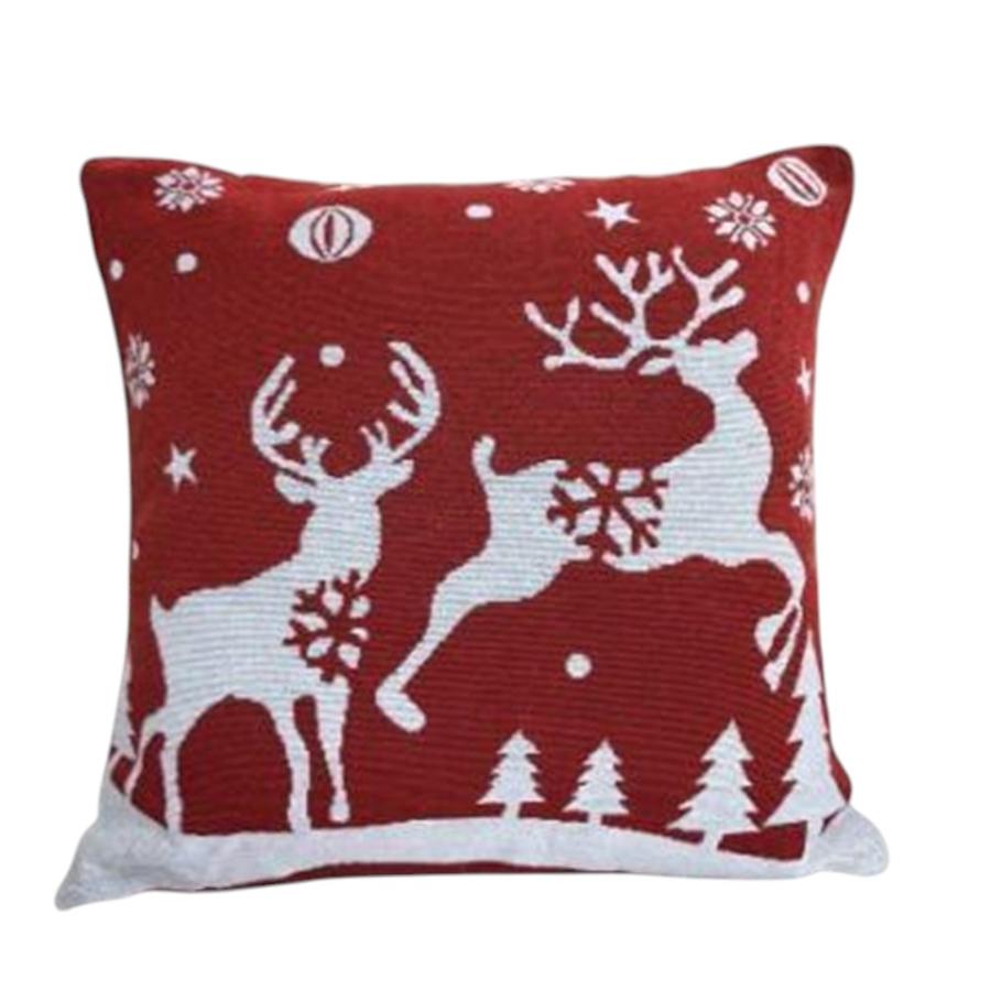 Cojín Navideño Matiz Ciervo 44x44cm Rojo