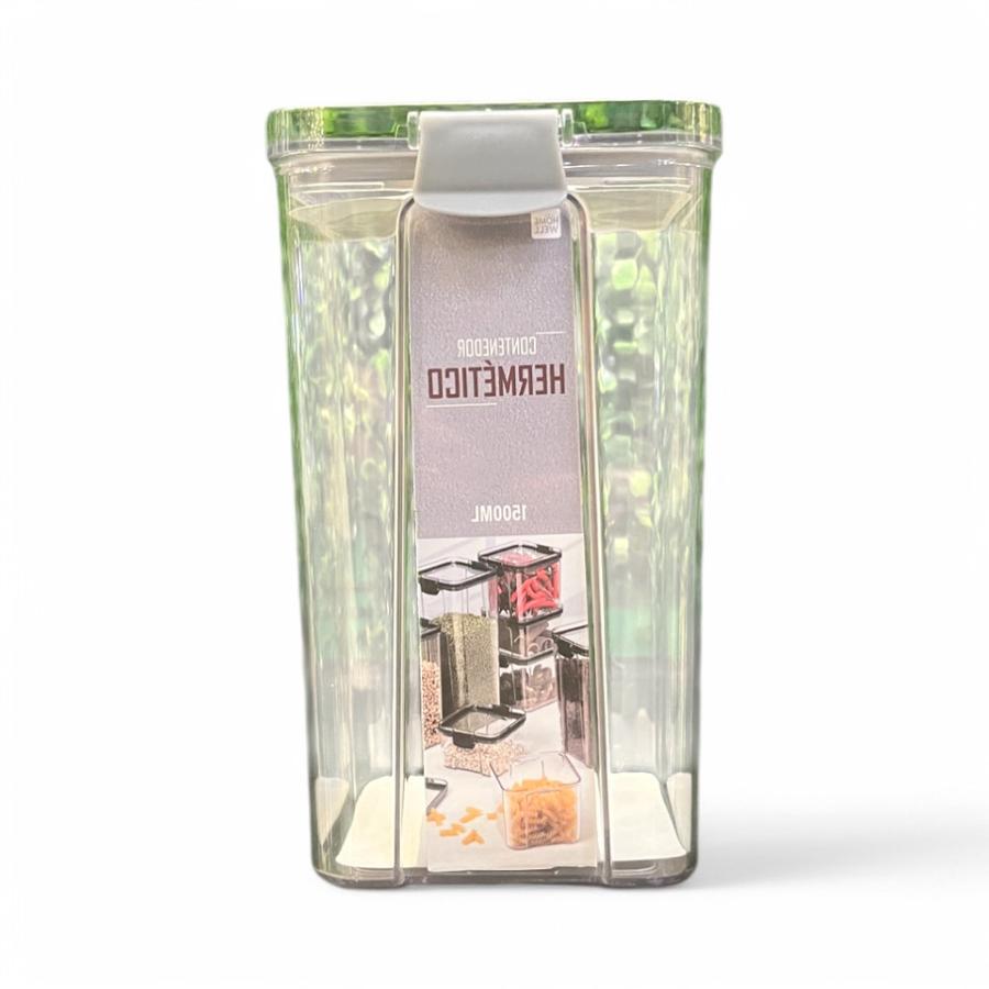 Mantén tus alimentos frescos y organizados con este contenedor hermético de 1500 ml. Su diseño transparente permite visualizar el contenido fácilmente, mientras que su tapa hermética asegura una conservación óptima de los alimentos, evitando la humedad y manteniendo su frescura por más tiempo. Ideal para almacenar cereales, legumbres, harinas y más.