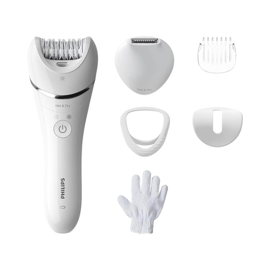 •Incluye: tapa de área delicada, tapa de contacto óptimo, peine y cabezal para zona del bikini, cepillo de limpieza, guante exfoliante y bolsa básica