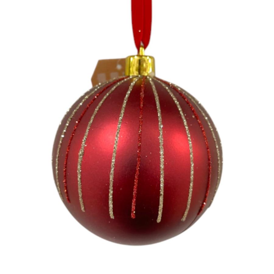 Añade un toque de elegancia y brillo a tu árbol con este set de esferas decorativas Matiz. Esta caja te ofrece 3 piezas de 10 cm en un vibrante color rojo mate, adornadas con finas líneas verticales de glitter dorado y rojo. Su diseño sofisticado es perfecto para destacar en cualquier rincón de tu decoración navideña.