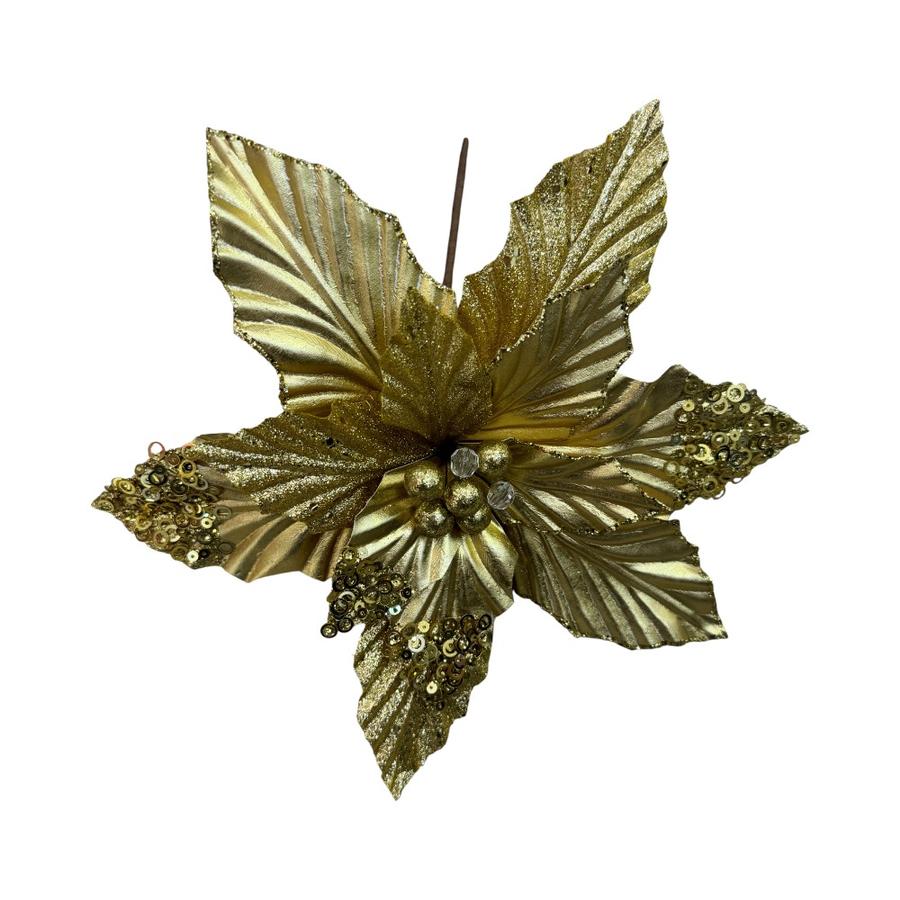 Flor Navideña Decoracion Matiz 27Cm Dorado