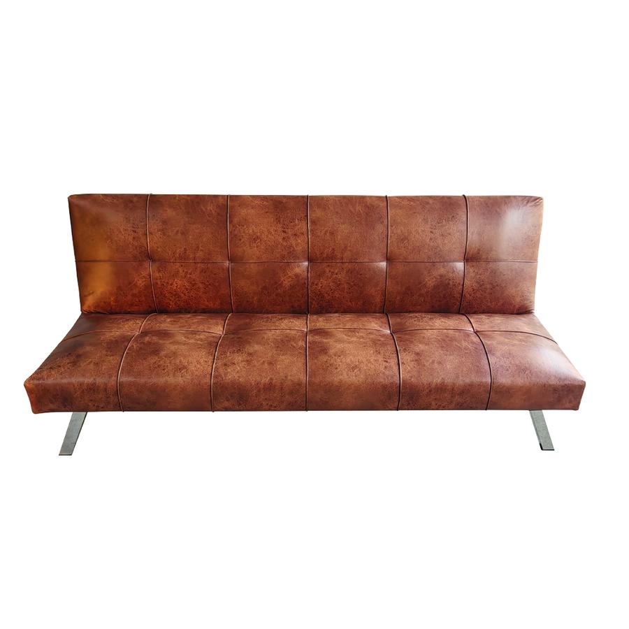 El futón Tortel destaca por su diseño moderno con acabado tipo cuero en color camel, ideal para dar un toque cálido y sofisticado a tu living o sala de estar. Su estilo versátil se adapta fácilmente a distintos ambientes, convirtiéndose en un elemento funcional y decorativo.