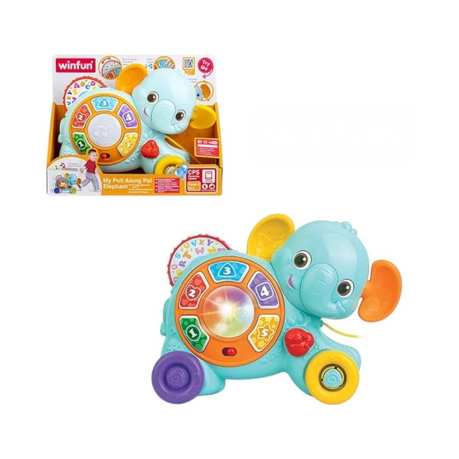 • Contenido: Elefante de arrastre con botones, luces y ruedas móviles.