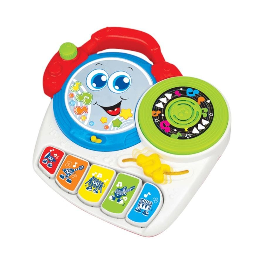 ¡La fiesta comienza con este divertido mezclador DJ para niños! Incluye botones de instrumentos musicales, almohadilla de batería y rueda de DJ con luces intermitentes que se activan con cada toque. Permite explorar sonidos, ritmos y melodías, incentivando la coordinación, la creatividad y el gusto por la música desde pequeños. Ideal para llevar a todas partes gracias a su práctica asa.