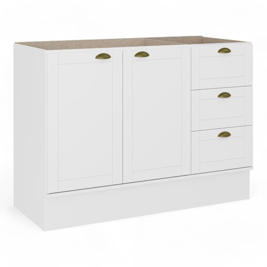 Este Lavaplato Baum Bela de 120 cm en blanco cuenta con dos puertas y tres cajones, diseñado para facilitar la organización en la cocina. Su estructura sólida y diseño funcional lo convierten en una adición práctica.
