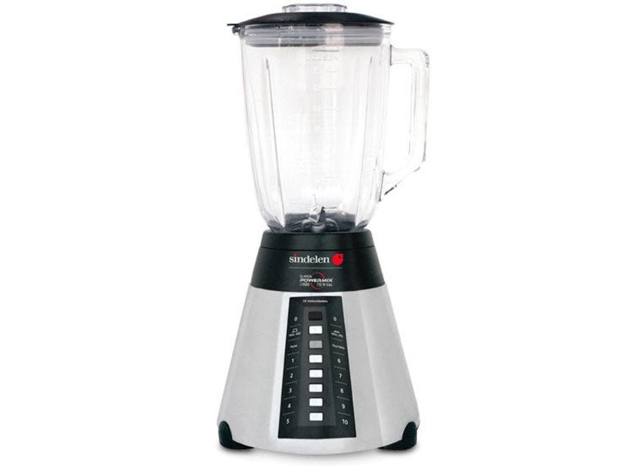 Licuadora Super Power Mix L10000 de Sindelen, con cuerpo de acero inoxidable, gran potencia de 750 watts y vaso de vidrio con sistema antivuelco de gran capacidad de 1.7 litro. Desde el panel de control podrás seleccionar las 10 velocidades, más pulso y función pica hielo. Cuenta con partes desmontables para facilitar el lavado en el lavavajillas y vaso dosificador en la tapa. Además, posee un protector térmico en el motor que evita el sobrecalentamiento del producto.