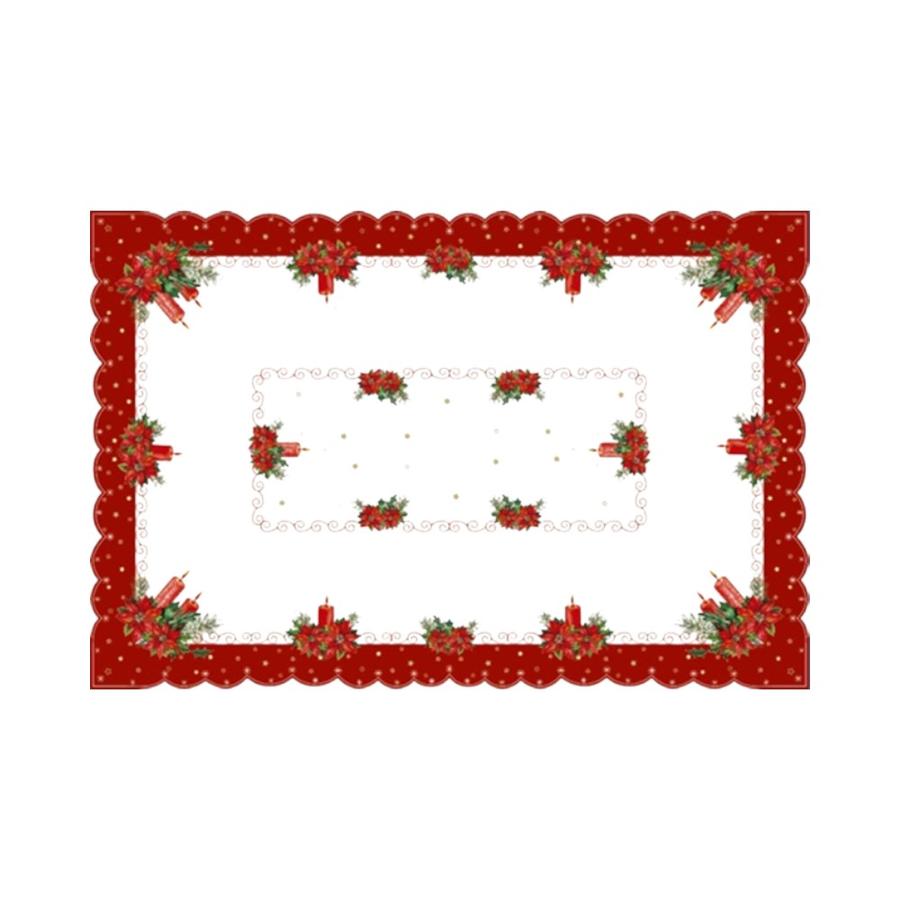 Mantel Navideño Matiz Bordes Rojo 145x220cm Blanco