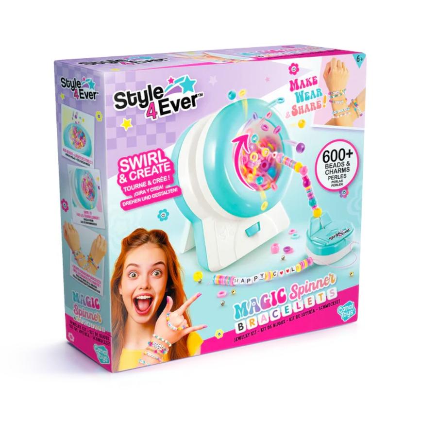 Crea pulseras de la amistad con estilo boho de forma fácil y entretenida. La máquina Boho Spinner te permite montar pulseras, añadir abalorios y dijes, y dejar que el giro defina diseños únicos para compartir con tus amigos.