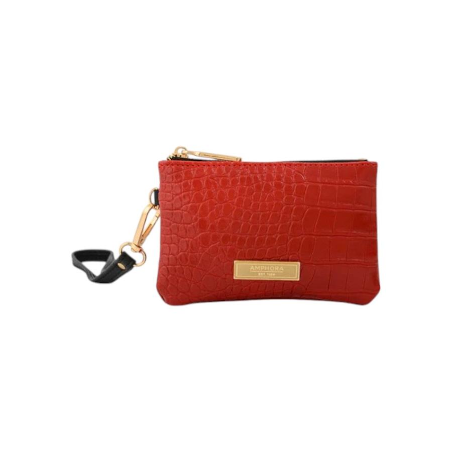 Lleva tus esenciales con actitud y estilo gracias al monedero Spencer. Este accesorio destaca por su vibrante color rojo y una sofisticada textura tipo croco, que le confiere un aire de elegancia clásica y atrevida a la vez. Su diseño compacto es ideal para guardar monedas, llaves o pequeños objetos, manteniéndolos seguros con su cierre superior de cremallera. Incluye un práctico tirador tipo correa de muñeca que facilita su transporte, permitiéndote llevarlo en la mano o enganchado en tu bolso con total comodidad.