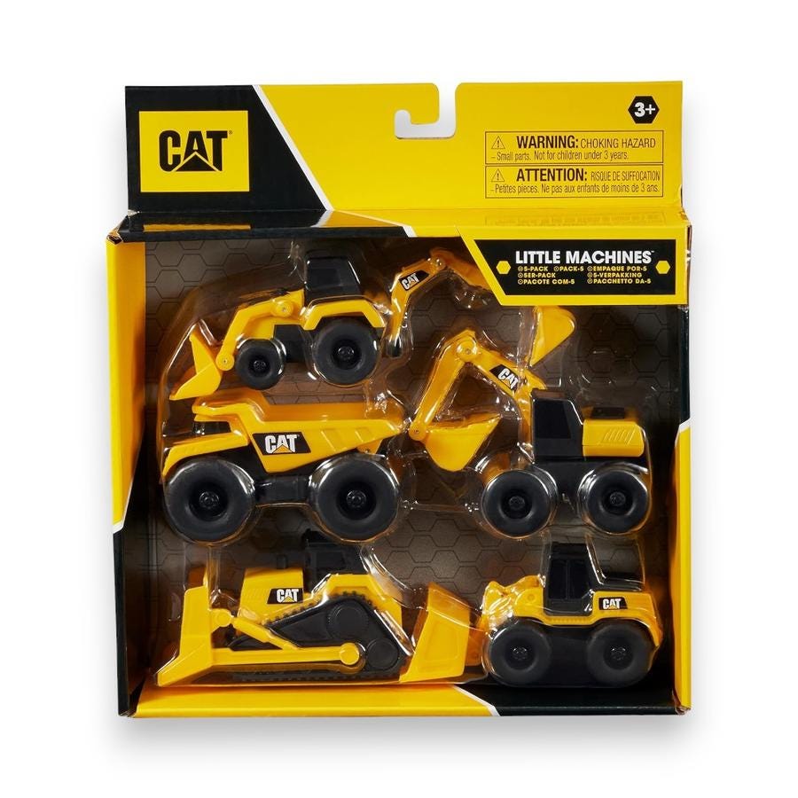 Lleva todo el sitio de construcción incluso a los espacios más pequeños con el paquete de 5 Little Machines Cat. Estos minivehículos de empuje eléctrico de 3 pulgadas te permiten tener el control a cada paso del camino. Mueve y coloca fácilmente los cubos y brazos articulados como los reales. El juego incluye cargador de ruedas, camión volquete, excavadora, bulldozer y retroexcavadora. Adecuado a partir de 3 años.