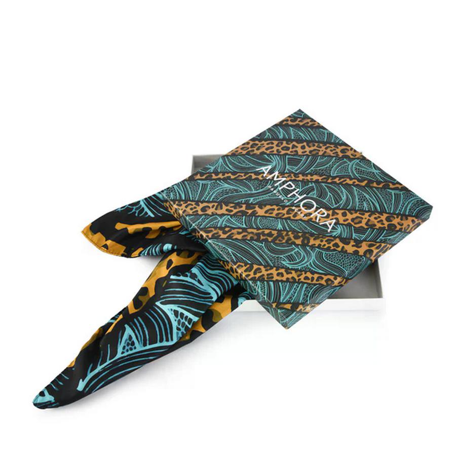 El pañuelo Tiare de Amphora es un accesorio de alto impacto que completará tu look con elegancia y estilo. Su diseño en tonos petróleos oscuros y su gran tamaño lo hacen ideal para esos días y noches un poco fríos. Confeccionado en poliéster satín twill, un tejido fino con un brillo sutil, este pañuelo te brindará un toque de personalidad en cualquier ocasión.