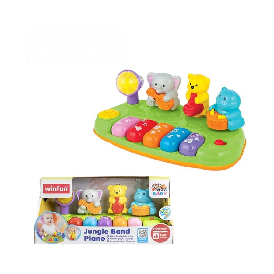¡Te presentamos el pianito musical de la selva, marca Winfun! Es un juego didáctico que alimenta el descubrimiento y la exploración y enseña causa y efecto. Viene con 8 notas que crean música hermosa cuando se juega, y cuando apreta los animalitos podrá escuchar los sonidos que hacen. ¡Tu bebé no dejará de disfrutar con este teclado táctil que emite sonidos divertidos!