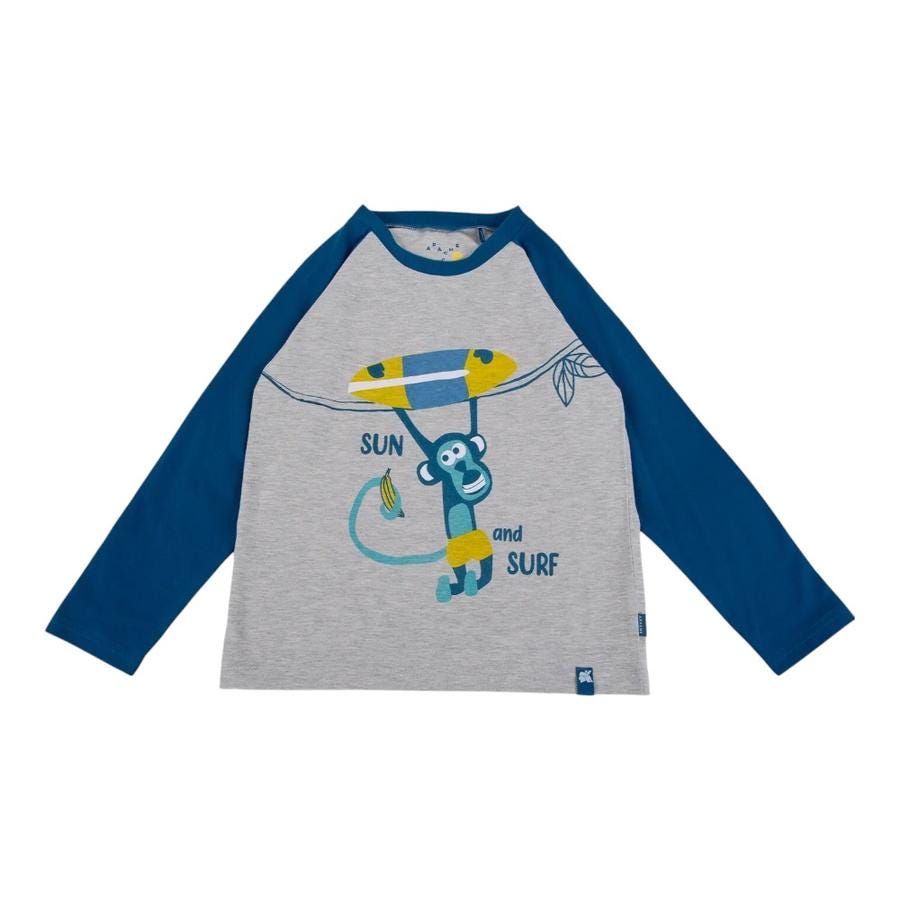 Pijama manga larga para niño, diseñado con un estampado de monos muy entretenido y lúdico que encanta a los más pequeños.