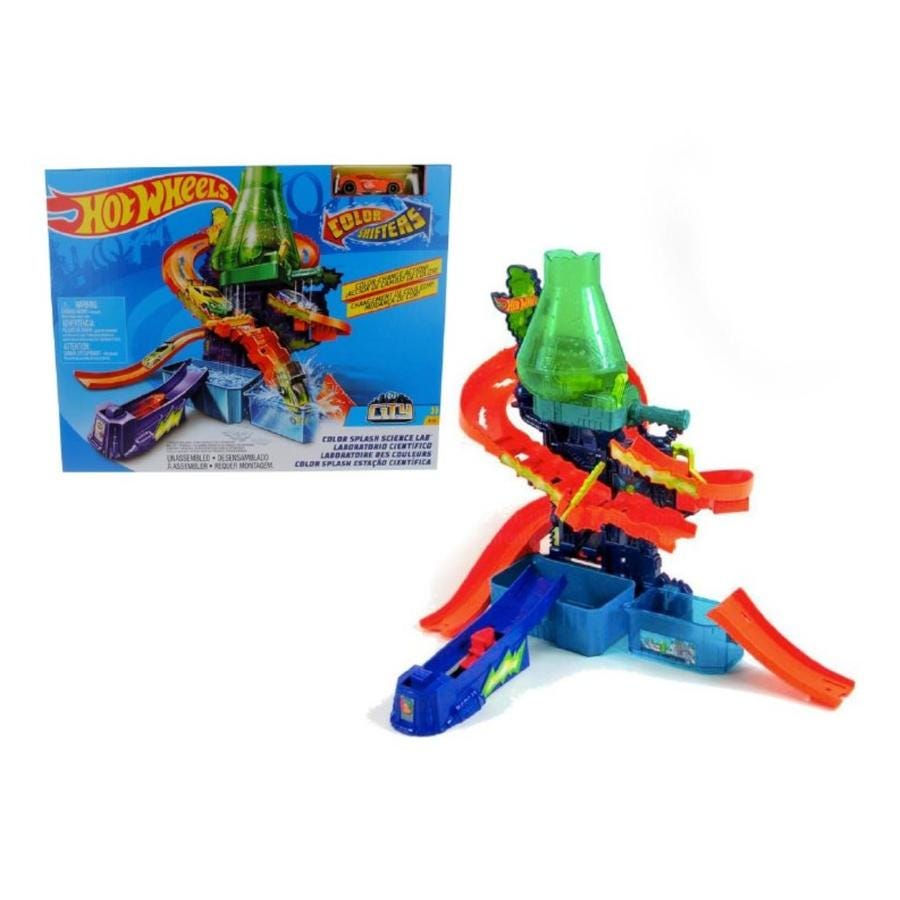 Pista De Autos Hot Wheels Cambia De Color Adéntrate en el laboratorio científico de Hot Wheels City con la Pista Cambia de Color. Experimenta la magia del cambio de color con tu auto Colour Shifters mientras atraviesas una cascada de agua. ¡Pero cuidado con el científico loco que podría atraparte! Esta pista ofrece emocionantes aventuras con tres zonas de cambio de color y un flujo de agua de más de 30 segundos. Características: - Tema: Laboratorio científico con experimentos descontrolados. - Cambio de color: Tres zonas de cambio de color activadas por agua. - Incluye: 1 auto Colour Shifters que cambia de color con el agua. - Efectos especiales: Cascada de agua para un cambio de color prolongado. - Compatibilidad: Se puede conectar con otros sets de Hot Wheels. - Edad recomendada: A partir de 3 años.