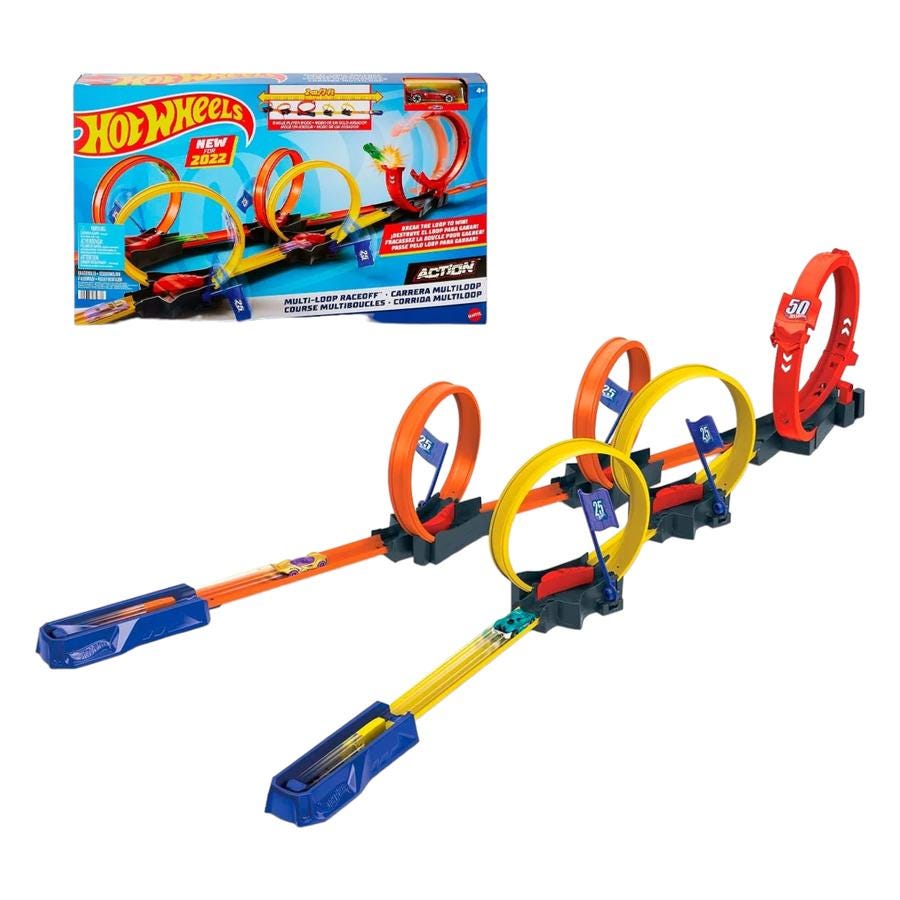 Deja que tus hijos demuestren sus habilidades al volante mientras desafían la gravedad en esta emocionante pista. Con sus acrobacias, derrapes y el emocionante Loop, esta pista es perfecta para que tus hijos compitan con sus amigos y se conviertan en los reyes de la pista.