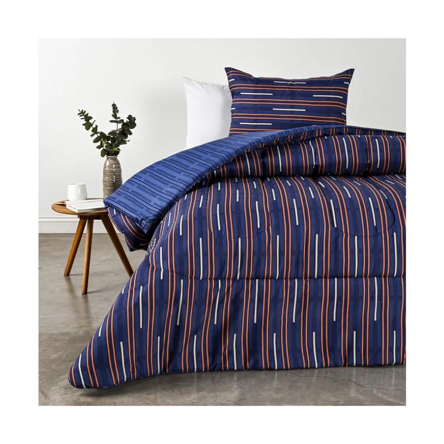 Renueva tu dormitorio con el plumón Trazos de 1.5 plazas de American Family, la línea textil de Cannon Home. Su diseño moderno en fondo azul con líneas anaranjadas y blancas aporta un contraste vibrante y dinámico, ideal para dar personalidad a tu cama. El relleno de microfibra brinda abrigo ligero y una textura esponjosa para un descanso confortable. Incluye una funda de almohada a juego para vestir tu cama con coherencia y estilo.