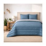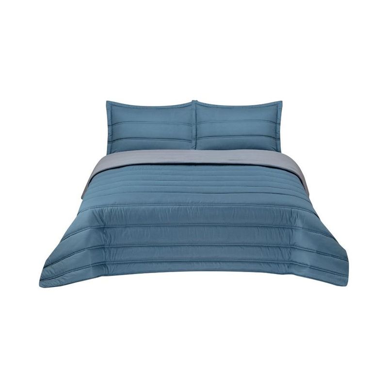 Transforma el aspecto de tu habitación principal con un plumón reversible que ofrece dos looks sofisticados en una sola prenda. Con un lado en color azul petróleo y el reverso en gris, este modelo de la familia Classic te permite jugar con la decoración de tu cama de 2 plazas de forma sencilla y rápida. La estructura acolchada mediante franjas horizontales asegura que el volumen se mantenga homogéneo, evitando desplazamientos del relleno y garantizando una temperatura agradable durante el descanso. Su acabado mate y textura suave proporcionan una sensación de máximo confort, convirtiéndolo en un elemento esencial que combina durabilidad y un estilo contemporáneo impecable.