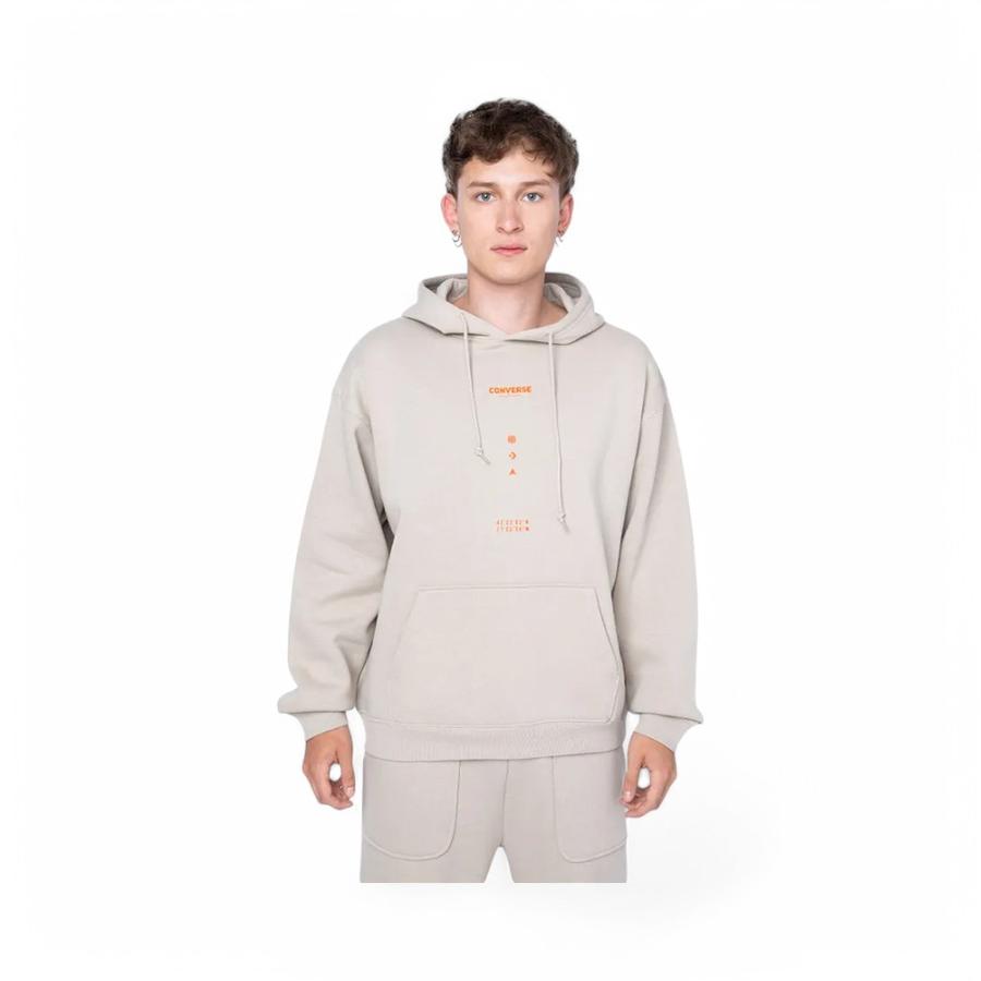 Polerón Hoodie Hombre Wordmark Loose Fit Graphic Café Claro