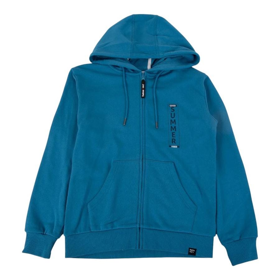 Este polerón básico para niño cuenta con capuchón y cordón ajustable para mayor comodidad. El cierre frontal y el bolsillo canguro lo hacen práctico para el día a día. El estampado en relieve en la parte delantera añade un detalle único a este polerón, disponible en un elegante verde oscuro.