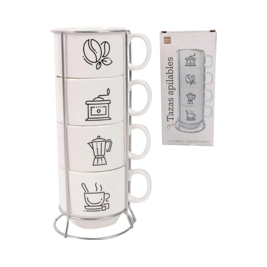 Set 4 Tazas Apilables Loza 100 ml Homewell Diseño Cocina