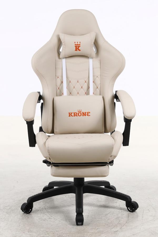 Silla Gamer Krone Premium XL Reclinable con Apoyapiés - Crema