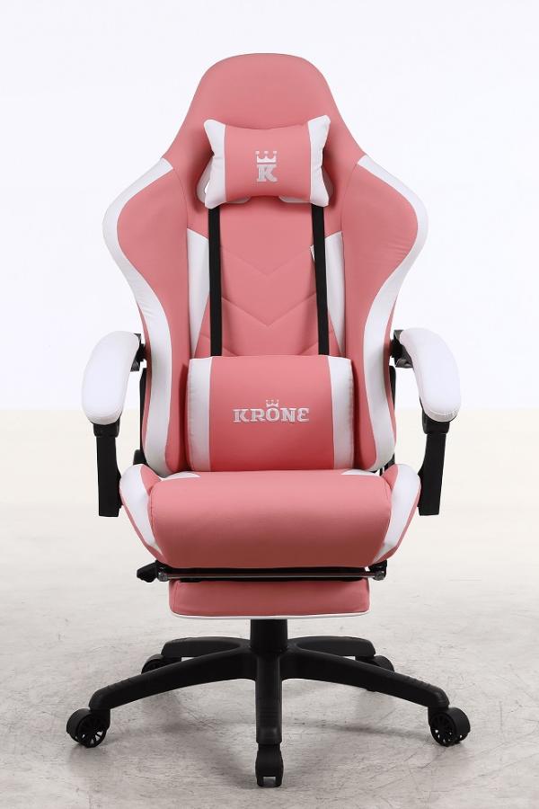 Silla Gamer Krone Premium XL Reclinable con Apoyapiés - Rosada