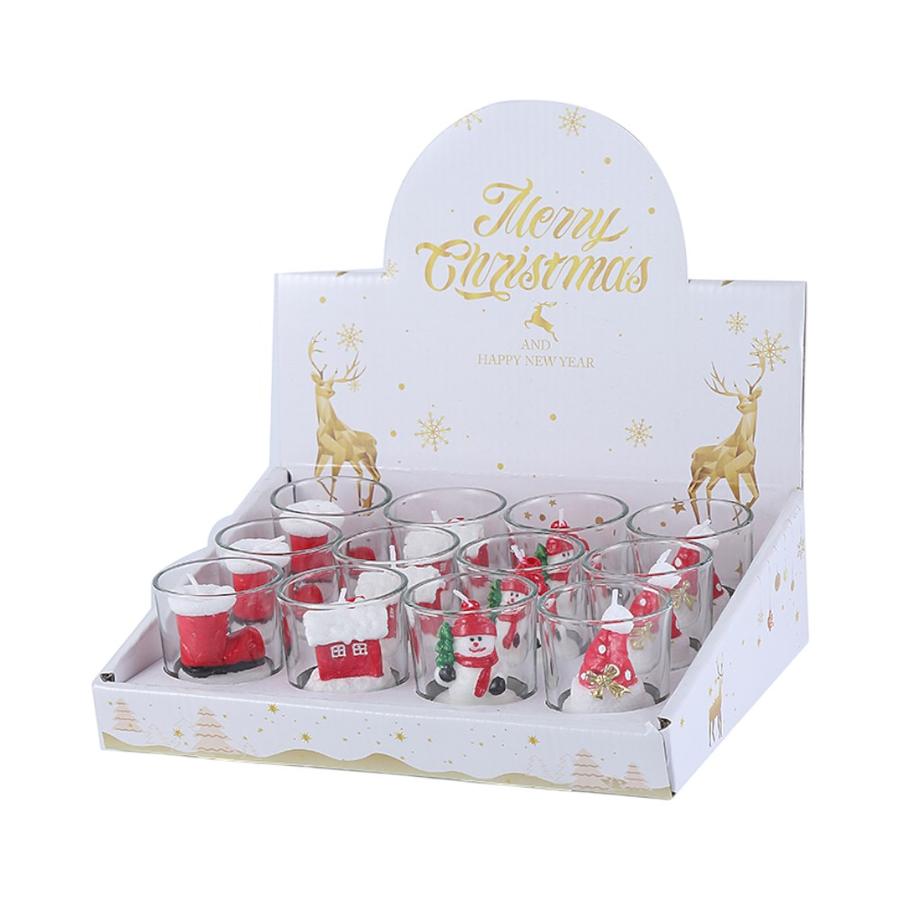 Añade un toque de luz y festividad a tu hogar con este set de velas Matiz en vaso. La caja exhibidora te ofrece una variedad de diseños navideños dentro de pequeños vasos de vidrio, incluyendo figuras de Santa, botas navideñas, hombres de nieve y casas con nieve. Son perfectas para decorar mesas o repisas, creando un ambiente cálido y mágico.